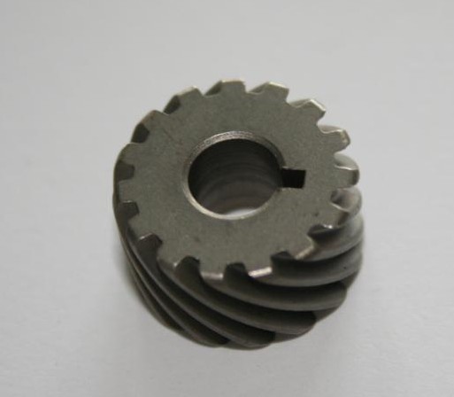 斜齿轮:齿线为螺旋线的圆柱齿轮。斜齿轮不完全是螺旋齿轮,应该说,螺旋齿轮是两个斜齿轮的啮合方式,由它们在空间传递力的方向不同来区分。 普通的直齿轮沿齿宽同时进入啮合,因而产生冲击振动噪音,传动不平稳。 斜齿圆柱齿轮传动则优于直齿,且可凑紧中心距用于高速重载。