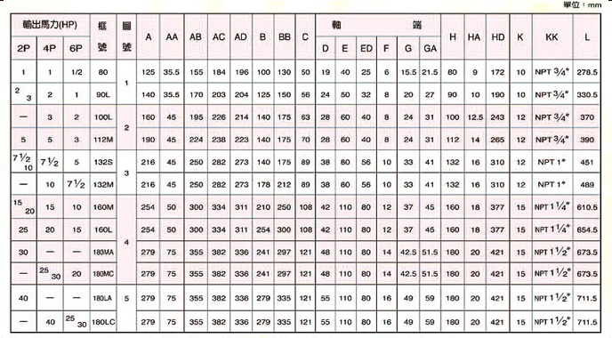 东元卧式防爆马达功能特性(CNS认证):低振动~精密加工及动平衡,振动等级达NEMA MG1 1998 Part 7、东元卧式防爆马达之设计符合国际上重要性能及品管规范,为低噪音、长寿命之电动机,具工商业上之经济实用价值。产品尺寸、特性依据IEC、JIS、CNC、NEMA等规格之要求,低振动、低噪音。F级绝缘,B级温升,使用系数1.0以上,满载温升低,绝缘寿命长东元变频马达功能特性:冷却方式:强制冷却附送风机,F级绝缘,附热保护器~常闭型。产品系列:卧式:EVEFYG、EVEFYH、AELF、AELFTF 立式:EVVFYG、EVVFYH、AELV、AELVTF。产品规格:额定输出1/2~125HP极数(P) 4、6、 回授装置P.G(ENCODER)编码器600P.P.R.输入电压DC5~15V COMPLEMENTARY8电压(v) 600以下频率(Hz) 50、60机座号(F#) 71~A250MC防护等级IP54(马达主体)冷却方式IC411转矩特性60Hz~10Hz定转矩10Hz~6Hz递减转矩