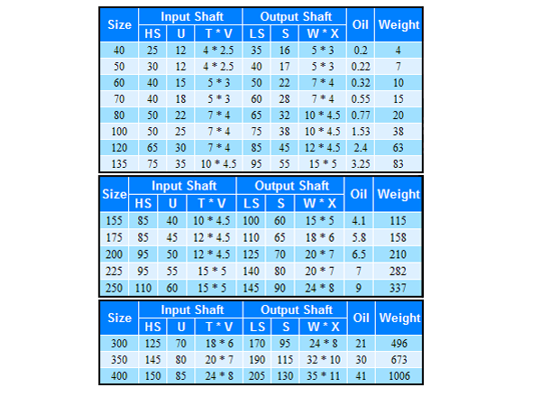 2. 型号(SIZE)50,60,70,80,100,120,135,155,及175型之速比20:1,其实速比为20.5:1(RATIO 20:1,Actual ratio is 20.5:1)